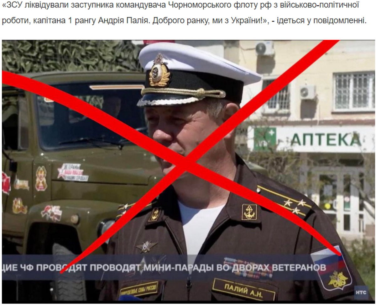 Σύμφωνα με τα ουκρανικά μέσα μαζικής ενημέρωσης, πρόκειται για τον Andriy Paliy, Αναπληρωτή Διοικητή του Ρωσικού Στόλου της Μαύρης Θάλασσας.