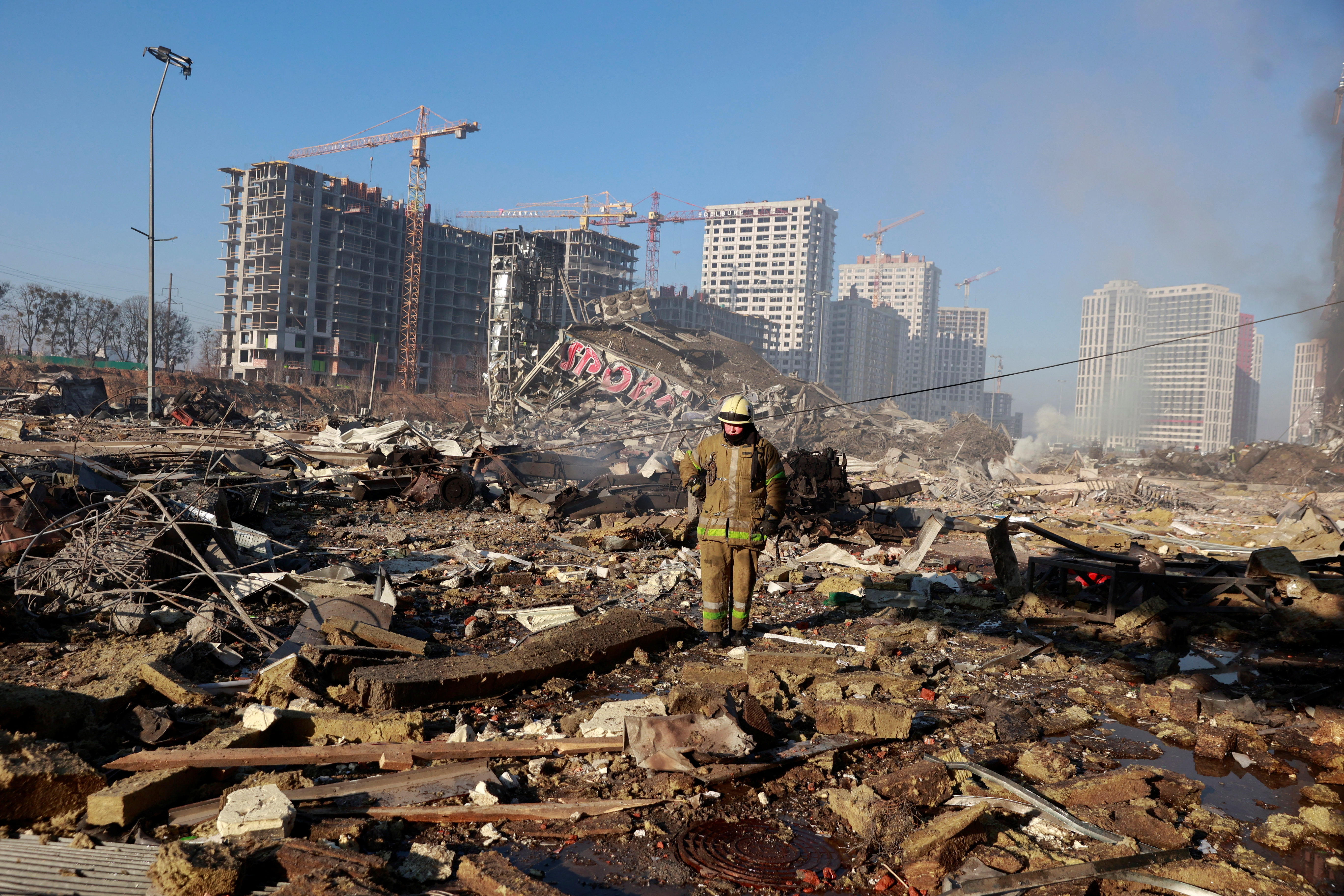 Σε απόσταση μερικών εκατοντάδων μέτρων, ο Ανατόλι Γιακούνιν, 79 ετών, μαζεύει τα τζάμια που έσπασαν από την έκρηξη. «Να φύγω, για ποιον λόγο;» ρωτάει έκπληκτος. «Έχω τέσσερα εγγόνια εδώ, το ένα είναι στον πόλεμο, πώς θα μπορούσα να τα αφήσω;» εξηγεί.