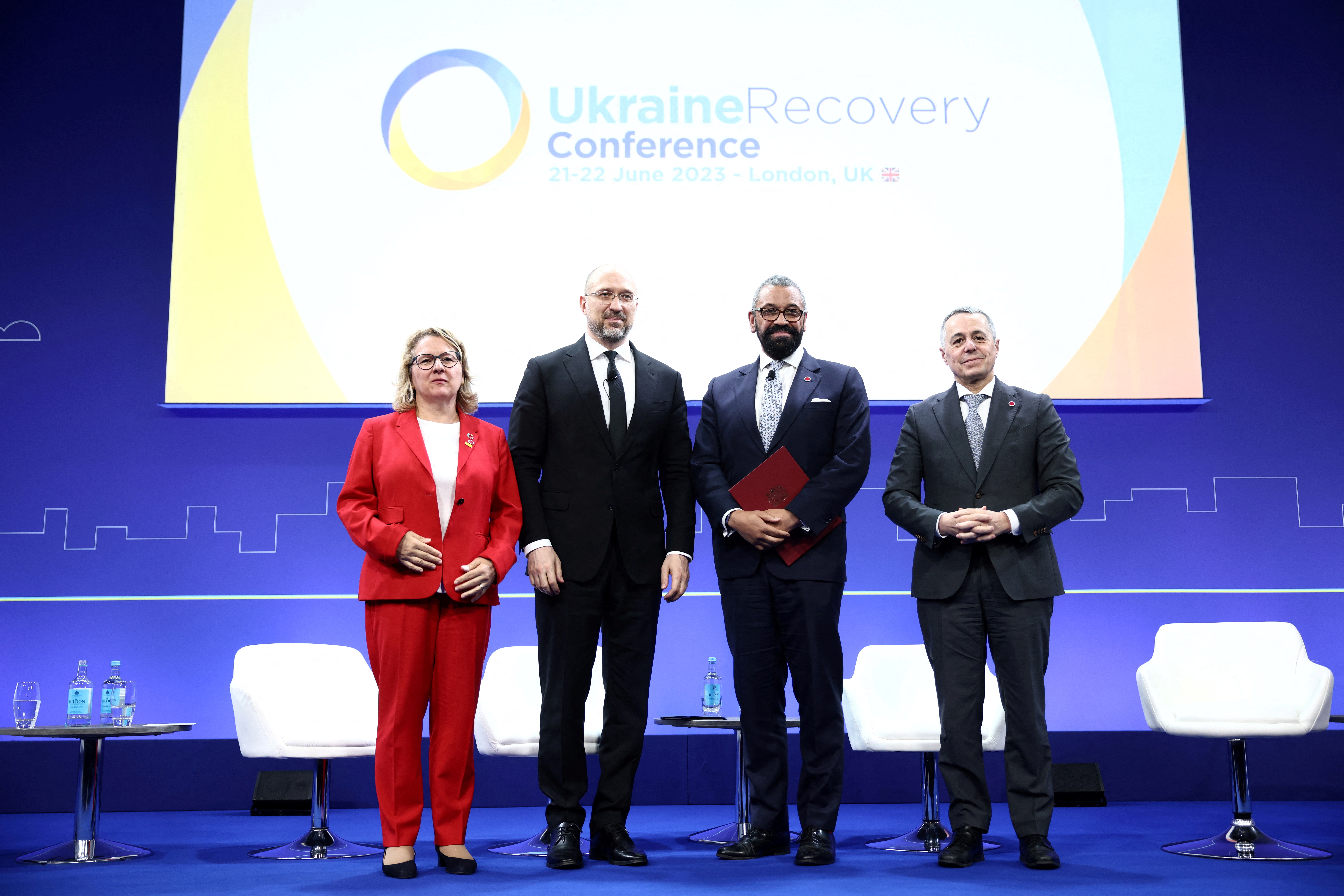 «Αρχίζουμε την ανοικοδόμηση της Ουκρανίας φέτος, δεν θα περιμένουμε το τέλος του πολέμου», δήλωσε ο Ουκρανός πρωθυπουργός Ντένις Σμίχαλ, ευχαριστώντας τους συμμάχους του Κιέβου για την οικονομική υποστήριξή τους. Χαιρέτισε επίσης το γεγονός ότι «σχεδόν όλοι οι συμμετέχοντες» πιστεύουν ότι η Ρωσία «θα πρέπει να πληρώσει για τα εγκλήματα και τις καταστροφές που προκάλεσε στην Ουκρανία».