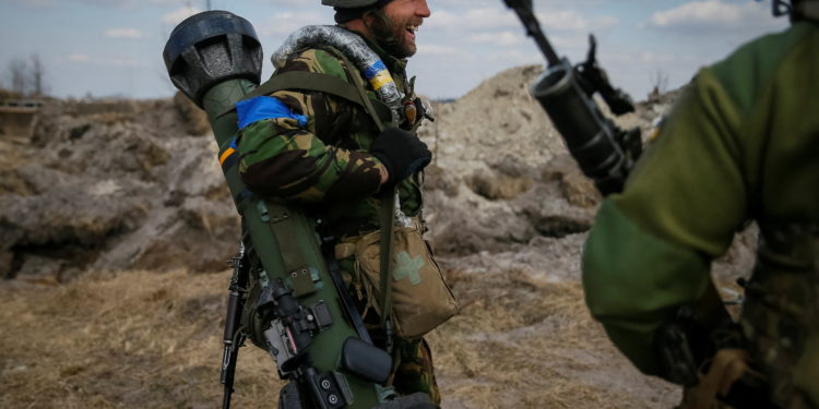 Οι Ουκρανοί στρατιώτες έχουν πάρει θέση μέσα και γύρω από το χωριό Κρανσοπίλια, όπου ακούγονται ανά τακτά διαστήματα πυρά του πυροβολικού.