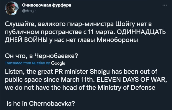 Οι τελευταίες ενημερώσεις στο προφίλ του Σόιγκου στον ιστότοπο του Υπουργείου Άμυνας χρονολογούνται επίσης στις 11 Μαρτίου.