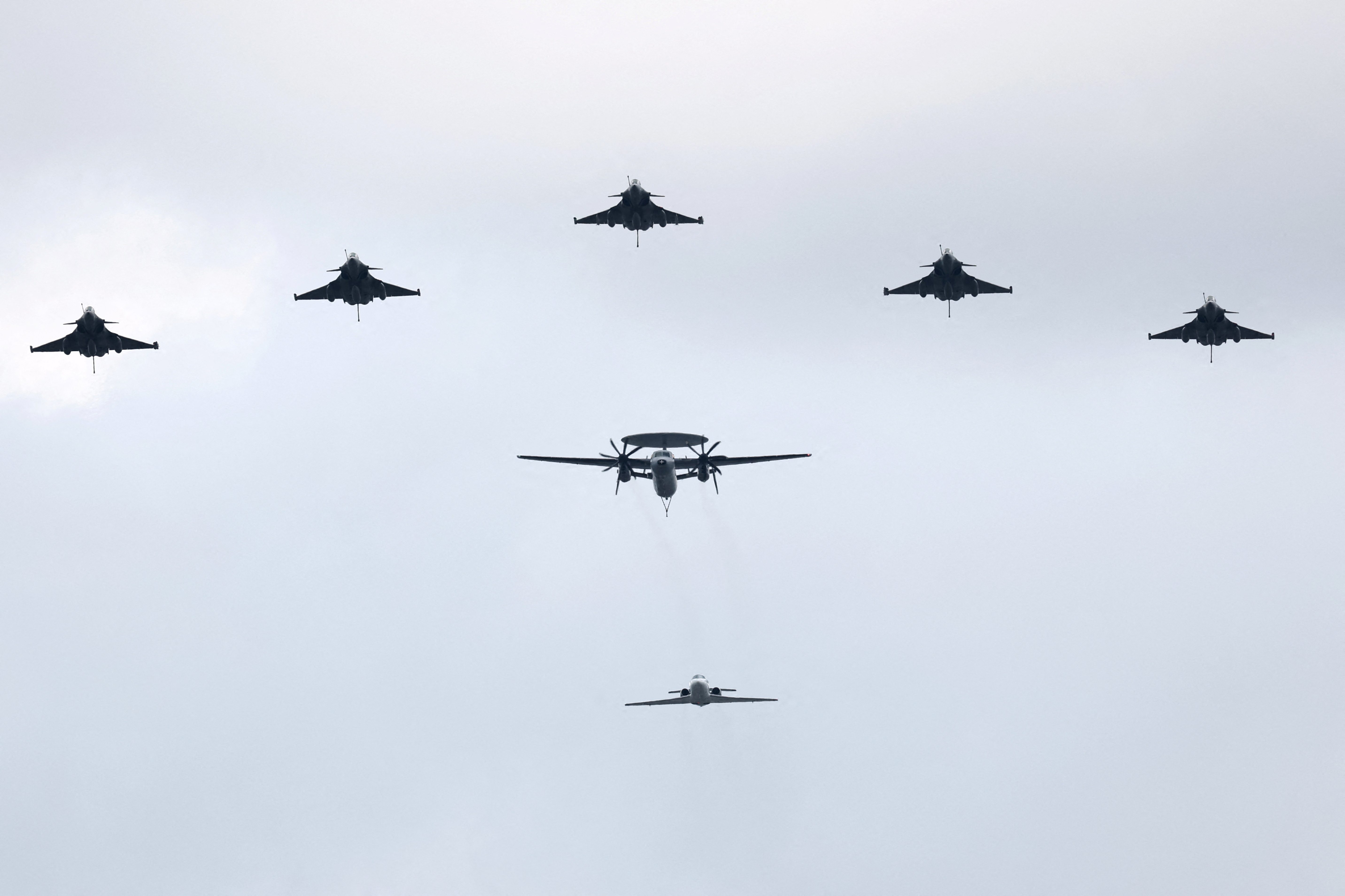 Αεροσκάφη Rafale, ένα ιπτάμενο ραντάρ E-2 και ένα αεροσκάφος Falcon 10