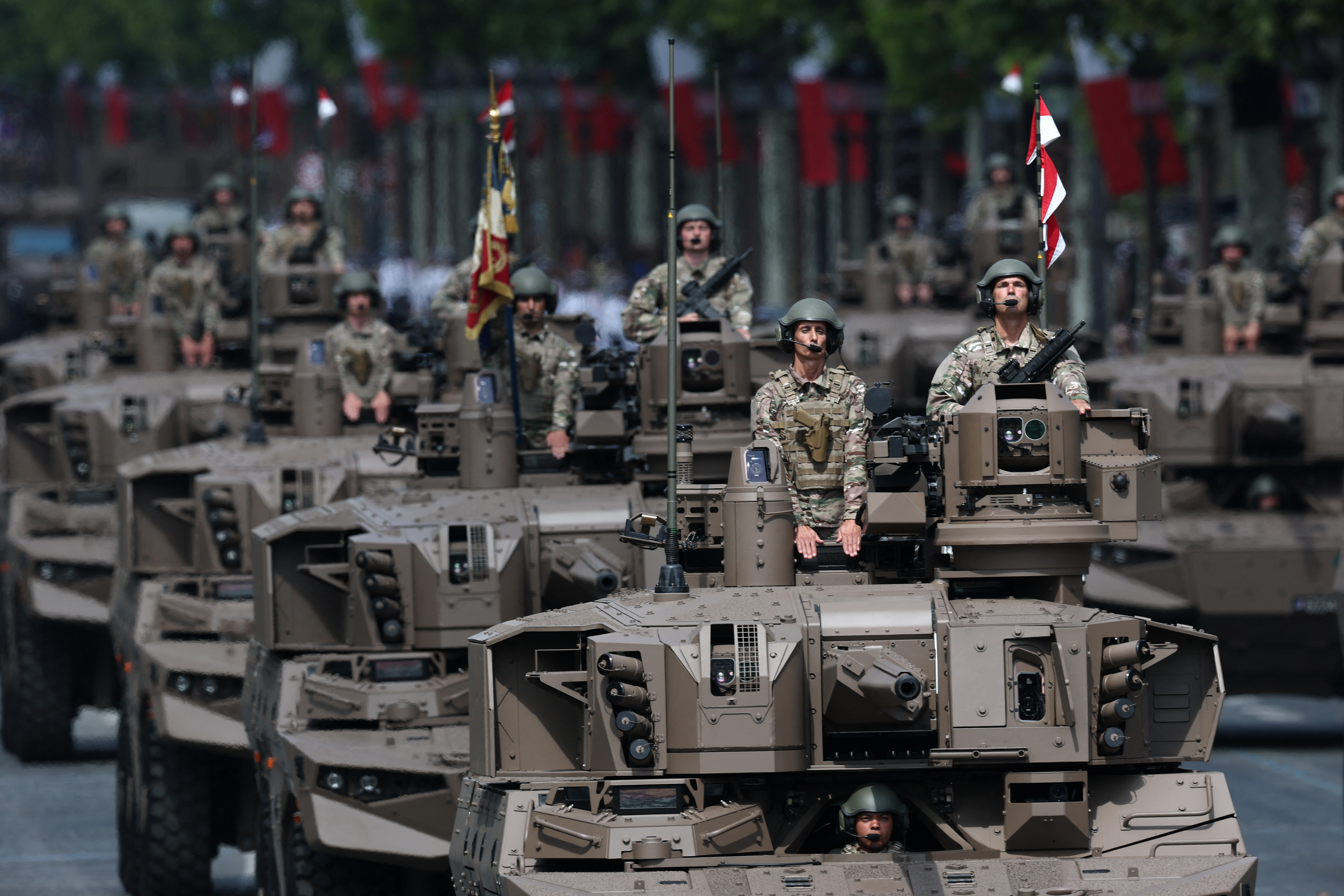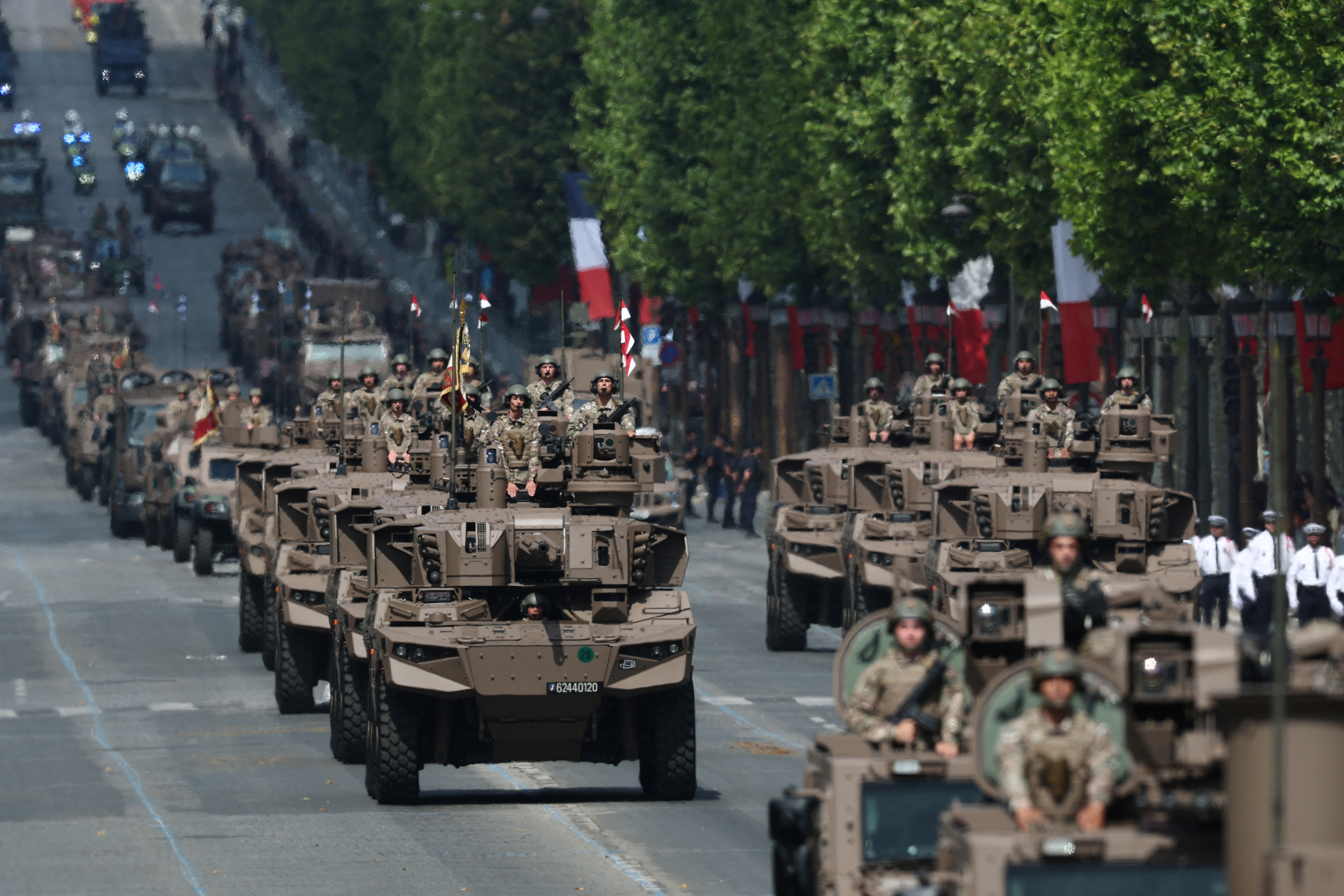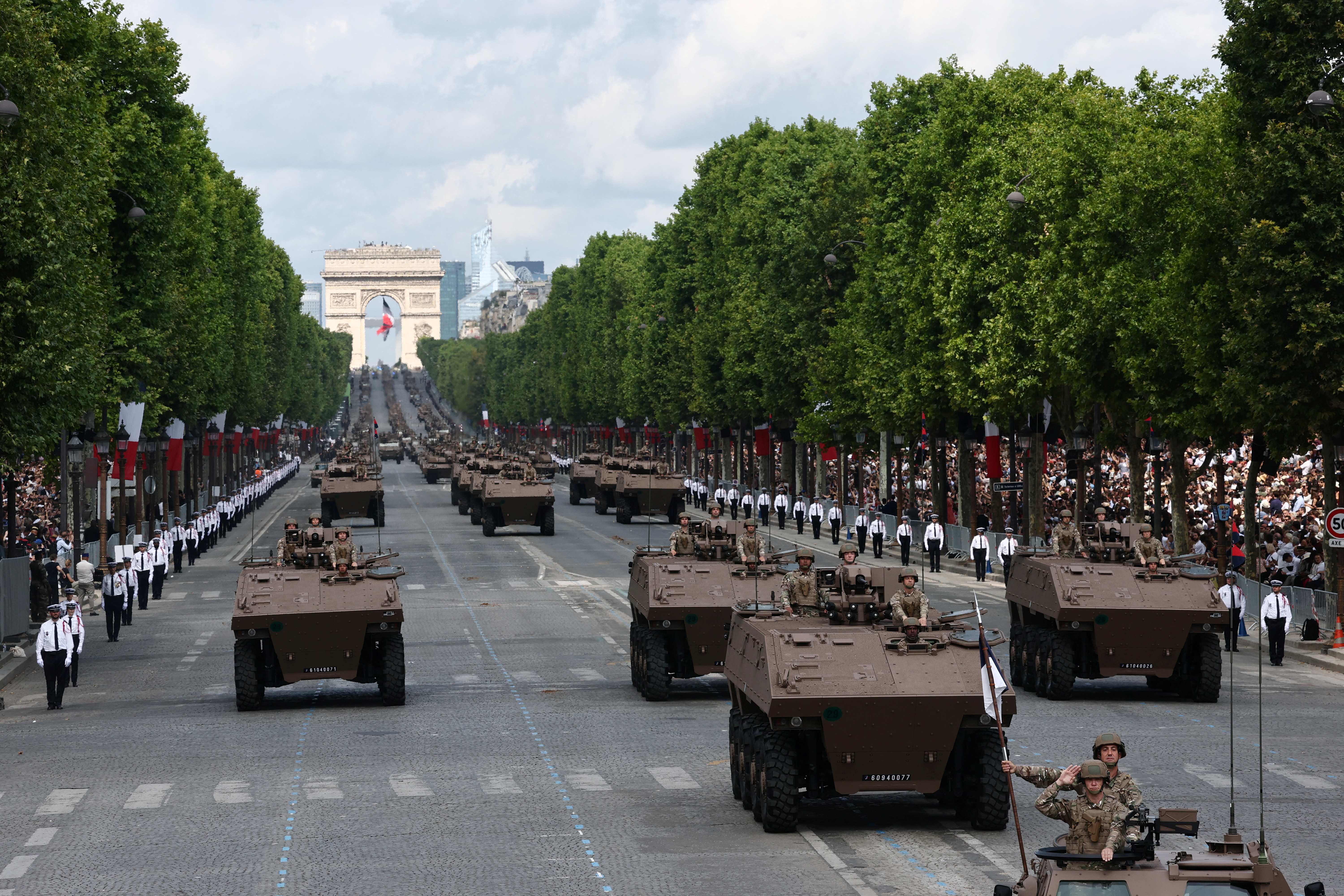 Με πάνοπλους στρατιώτες, τεθωρακισμένα, μαχητικά και συμμετοχές από συμμαχικές χώρες, η Γαλλία γιορτάζει την εθνική της επέτειο σήμερα Δευτέρα (14.7.25) με τη μεγάλη στρατιωτική παρέλαση στα Ηλύσια Πεδία.