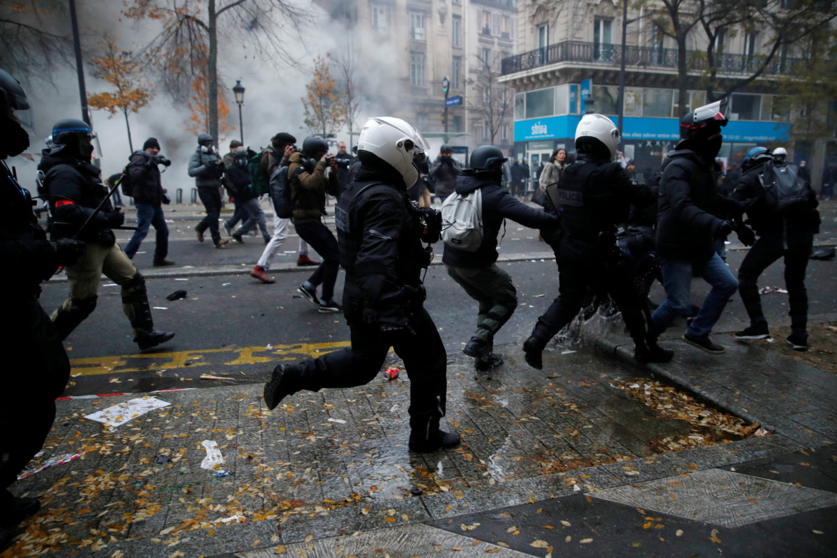 Η γαλλική αστυνομία έκανε χρήση δακρυγόνων και εφόρμησε εναντίον διαδηλωτών, που είχαν καλυμμένα τα πρόσωπά τους κι έσπασαν πολλές βιτρίνες, σε κοντινή απόσταση από την πλατεία της Δημοκρατίας στο Παρίσι, στο ανατολικό τμήμα της γαλλικής πρωτεύουσας.