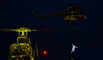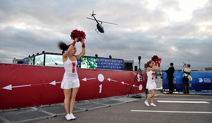 Μόλις ο φωτεινός πίνακας έδειξε «21.00.00» το πρώτο ελικόπτερο απογειώθηκε προς το νυχτερινό, μοσχοβίτικο ουρανό. Σύμφωνα με τους κανονισμούς του διαγωνισμού, το επόμενο ελικόπτερο περιμένει πέντε λεπτά, και μόνο μετά εξαφανίζεται στον ουρανό. Έτσι, το ένα μετά το άλλο ανεβαίνουν στο «διάδρομο του αγώνα» περίπου μια δεκάδα πληρωμάτων.