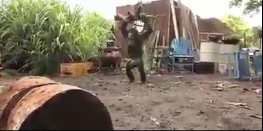 Οι στρατιώτες θεώρησαν πολύ αστειο να κάνουν «πλάκα» στον πίθηκο. Και το διασκέδαζαν πολύ είναι η αλήθεια. Μέχρι που ένα Καλάσνικοφ βρέθηκε…στην κατοχή του. Οι στρατιώτες εξακολούθησαν να το …γλεντάνε. Μέχρι που ο πίθηκος άρχισε να πυροβολεί! Ευτυχώς δεν ήξερε να σημαδεύει. Παρόλα αυτά αξίζει να δείτε πως …εξαφανίστηκαν οι «χιουμορίστες» στρατιώτες.