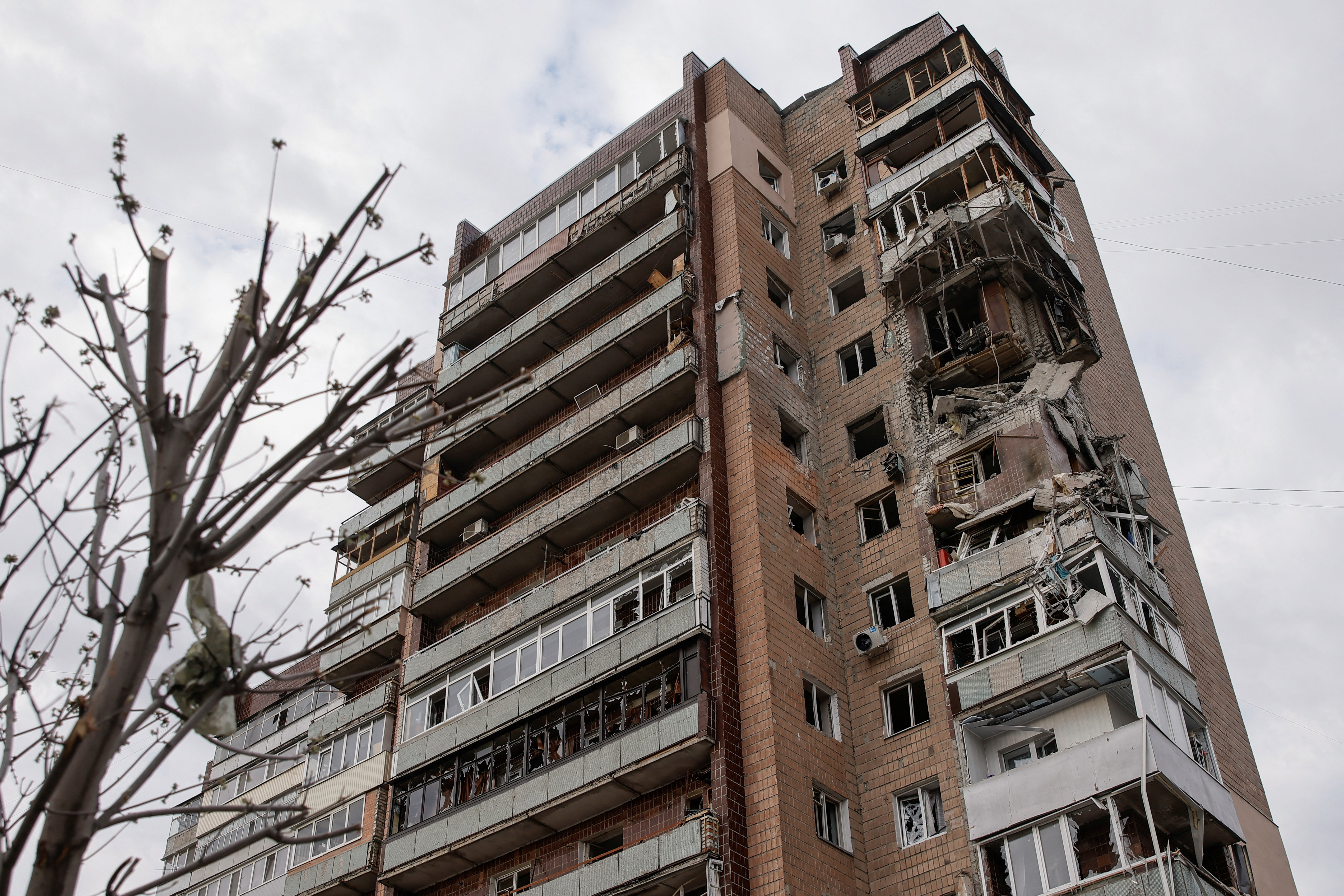 Η κρατική ραδιοφωνία- τηλεόραση της Ουκρανίας, Suspilne, μετέδωσε ότι ένα από τα πλήγματα προκάλεσε ζημιές στα διαμερίσματα τριών ορόφων σε 14ώροφο κτίριο, ενώ πρόσθεσε ότι τα σωστικά συνεργεία δεν μπορούσαν να εργαστούν για τουλάχιστον μία ώρα καθώς φοβόντουσαν νέες επιθέσεις.
