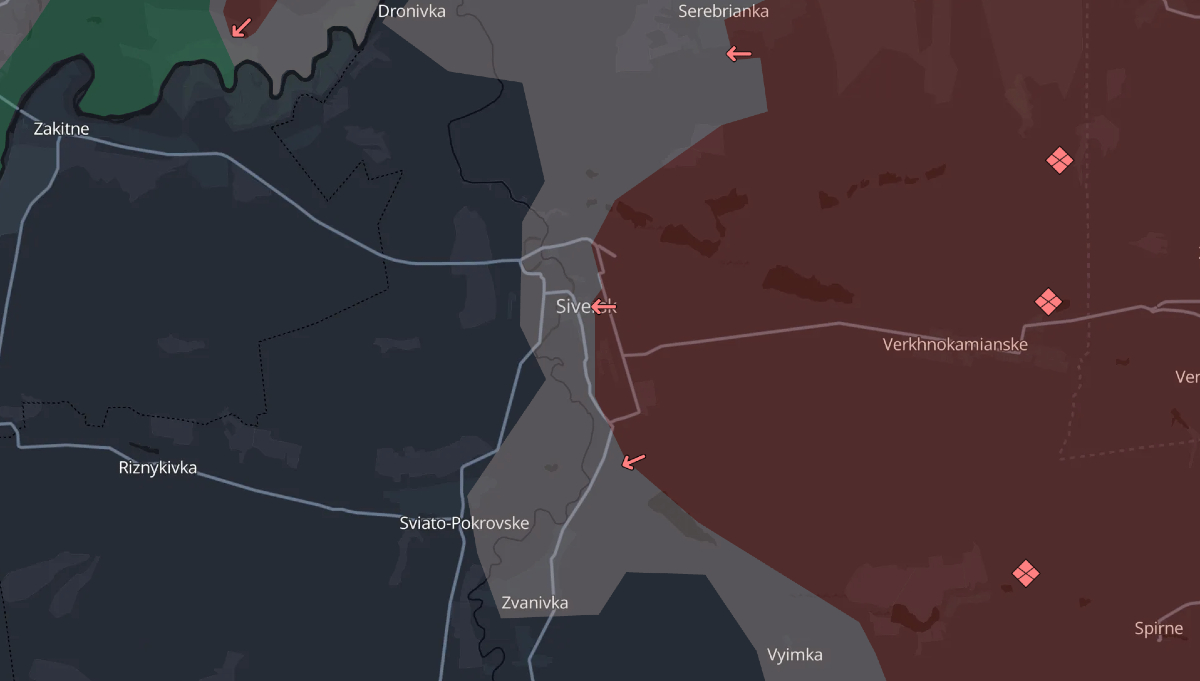 Στον χάρτη του μετώπου που υπάρχει στον ιστότοπο DeepState, που πρόσκειται στον ουκρανικό στρατό, το μισό Σιβέρσκ εμφανιζόταν υπό ρωσικό έλεγχο και το υπόλοιπο ως «γκρίζα ζώνη», δηλαδή ότι ακόμη γίνονταν μάχες.
