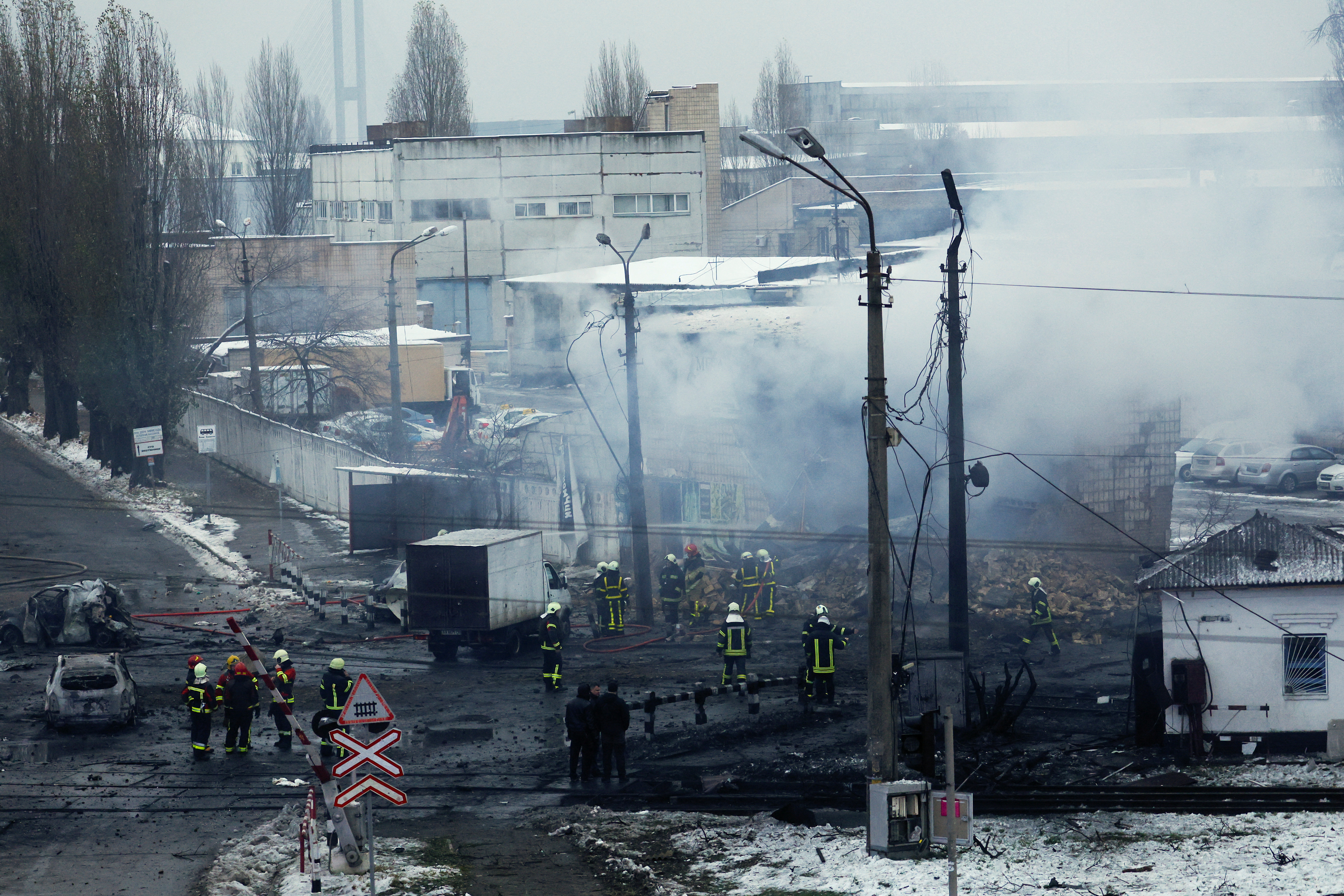 Ανταποκριτές του Reuters και του Γαλλικού Πρακτορείου είπαν ότι άκουσαν μέσα και γύρω από το Κίεβο πολλές ισχυρές εκρήξεις και ότι αντιαεροπορικοί πύραυλοι πετούσαν στον ουρανό. Έκτακτες διακοπές ρεύματος ξεκίνησαν στο Κίεβο, ανακοίνωσε ένας τοπικός πάροχος ενέργειας.