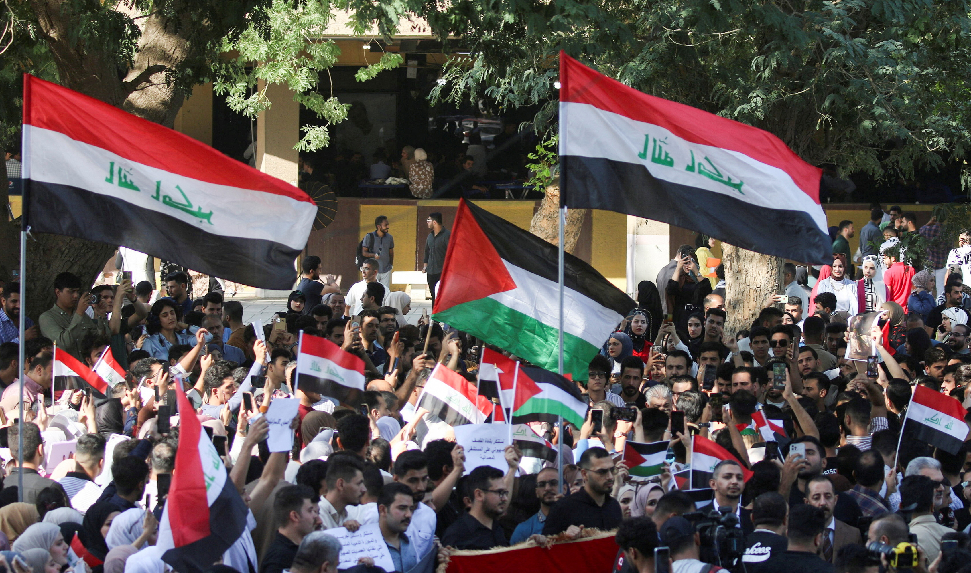 «Η απομάκρυνση του πρέσβη (της Γαλλίας) είναι υποχρέωση», «Γάλλοι και Αμερικανοί είναι σύμμαχοι των Σιωνιστών», φώναζαν ορισμένοι διαδηλωτές, σύμφωνα με δημοσιογράφους του Γαλλικού Πρακτορείου.