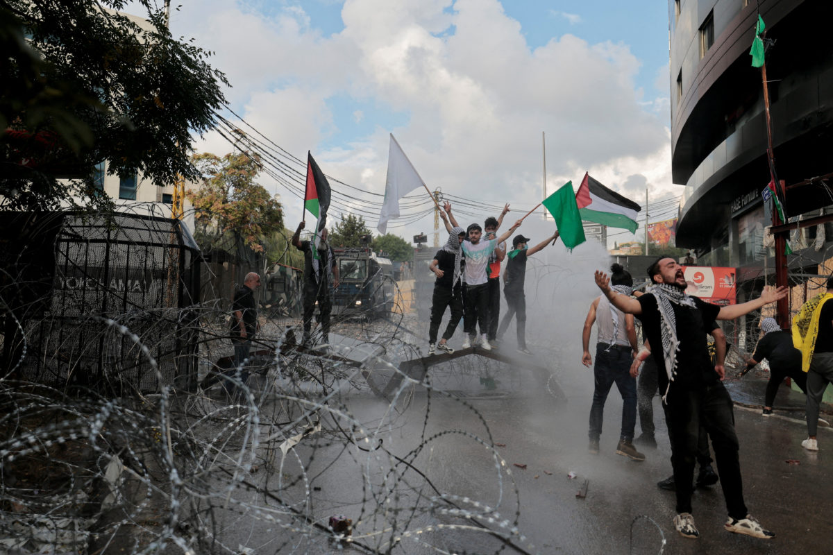 Με δακρυγόνα και νερό υπό πίεση επιχείρησαν οι δυνάμεις ασφαλείας του Λιβάνου να απωθήσουν χιλιάδες διαδηλωτές που είχαν συγκεντρωθεί κοντά στην αμερικανική πρεσβεία στη Βηρυτό, εκφράζοντας την οργή τους για την επίθεση του Ισραήλ, όπως λένε, σε ένα νοσοκομείο στη Γάζα όπου σκοτώθηκαν εκατοντάδες Παλαιστίνιοι.