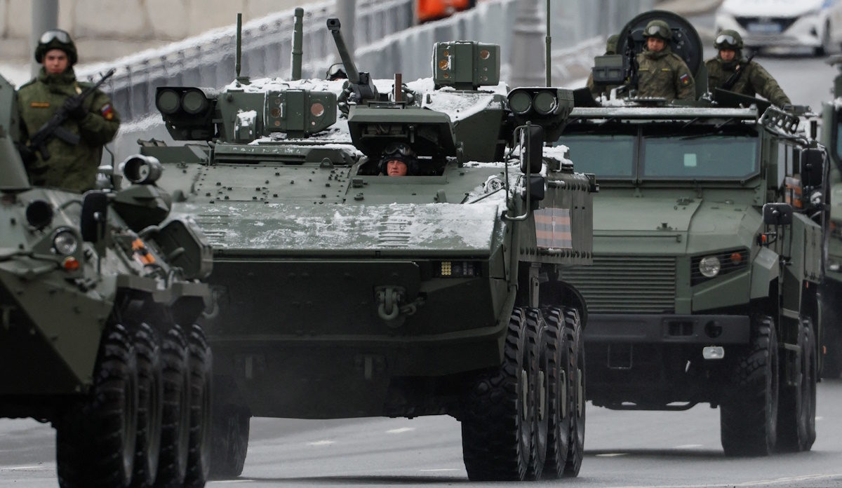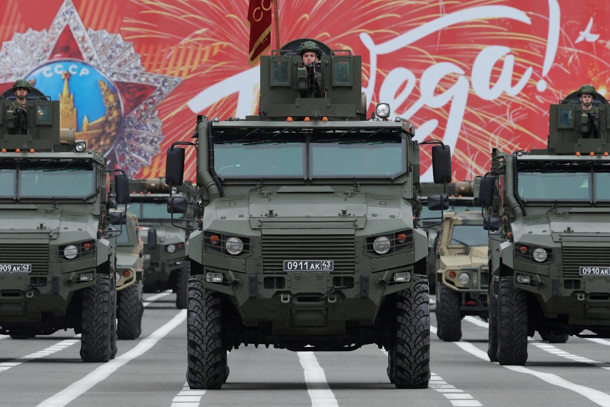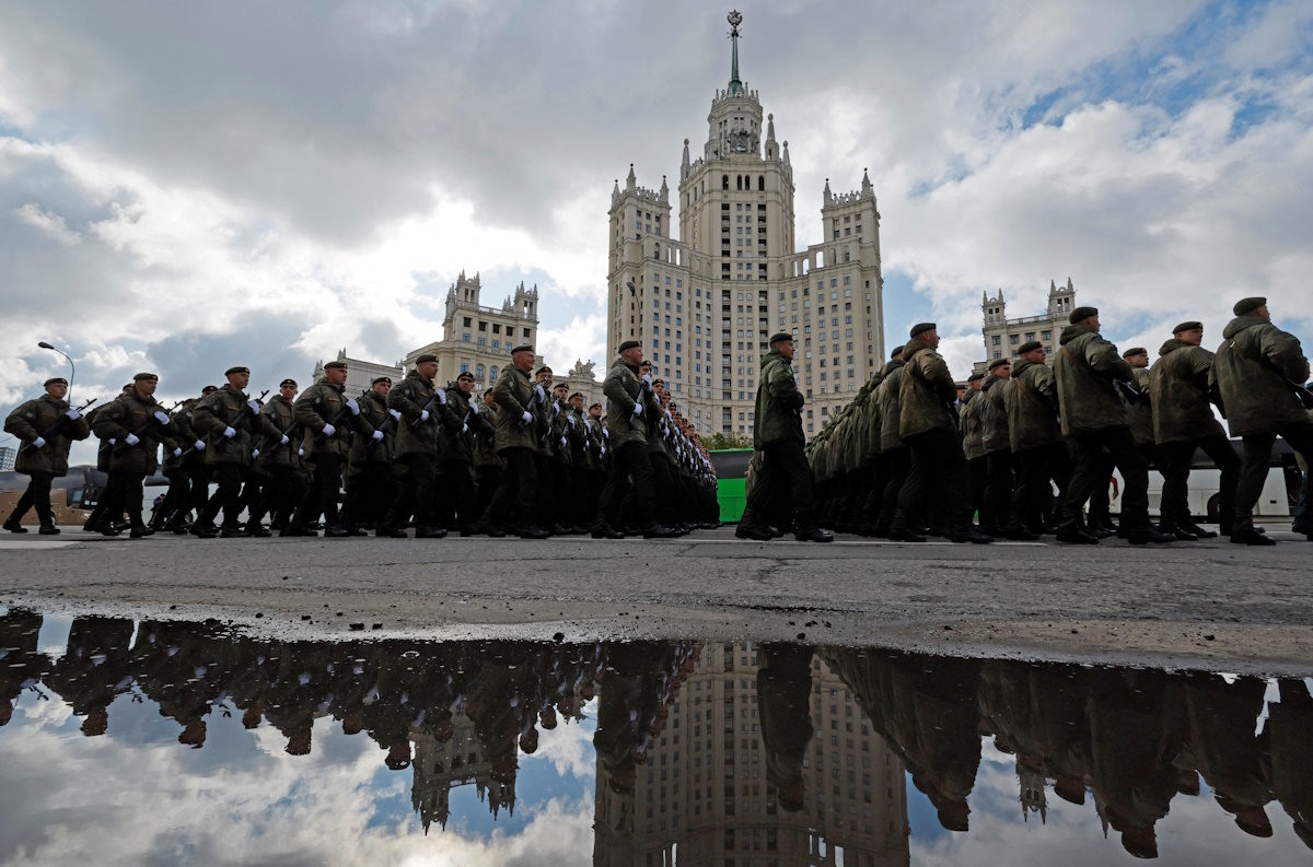 Σε μια εν πολλοίς λιτή παρέλαση που αντανακλά την καταπόνηση του πολέμου, η Ρωσία επέδειξε μόλις ένα άρμα μάχης T-34.