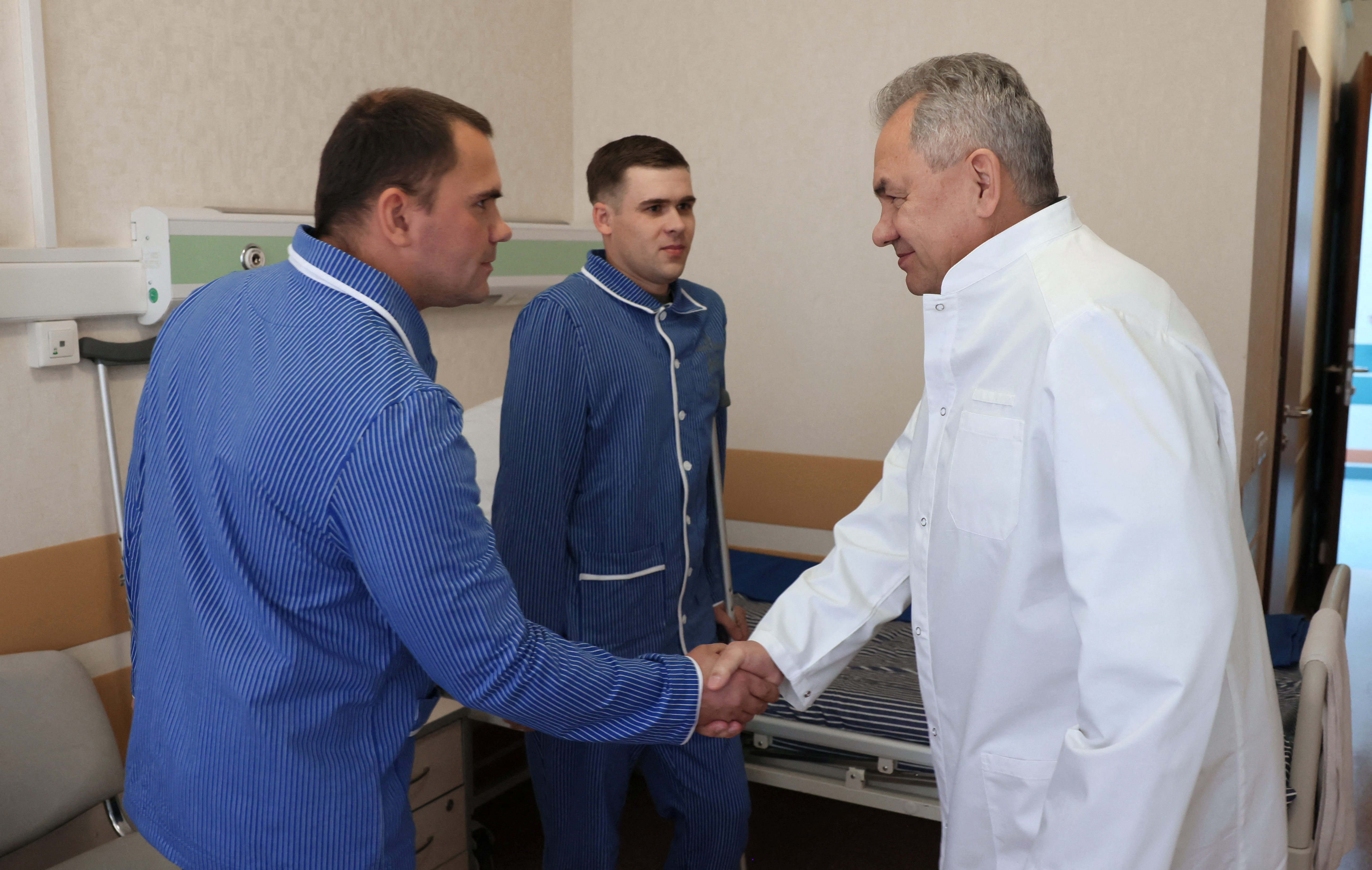 Φορώντας μία λευκή ιατρική ρόμπα, ο Πούτιν μίλησε με στρατιώτες στο στρατιωτικό νοσοκομείο Mandryka της Μόσχας, όπως μετέδωσε το ρωσικό τηλεοπτικό κανάλι Rossiya-24.
