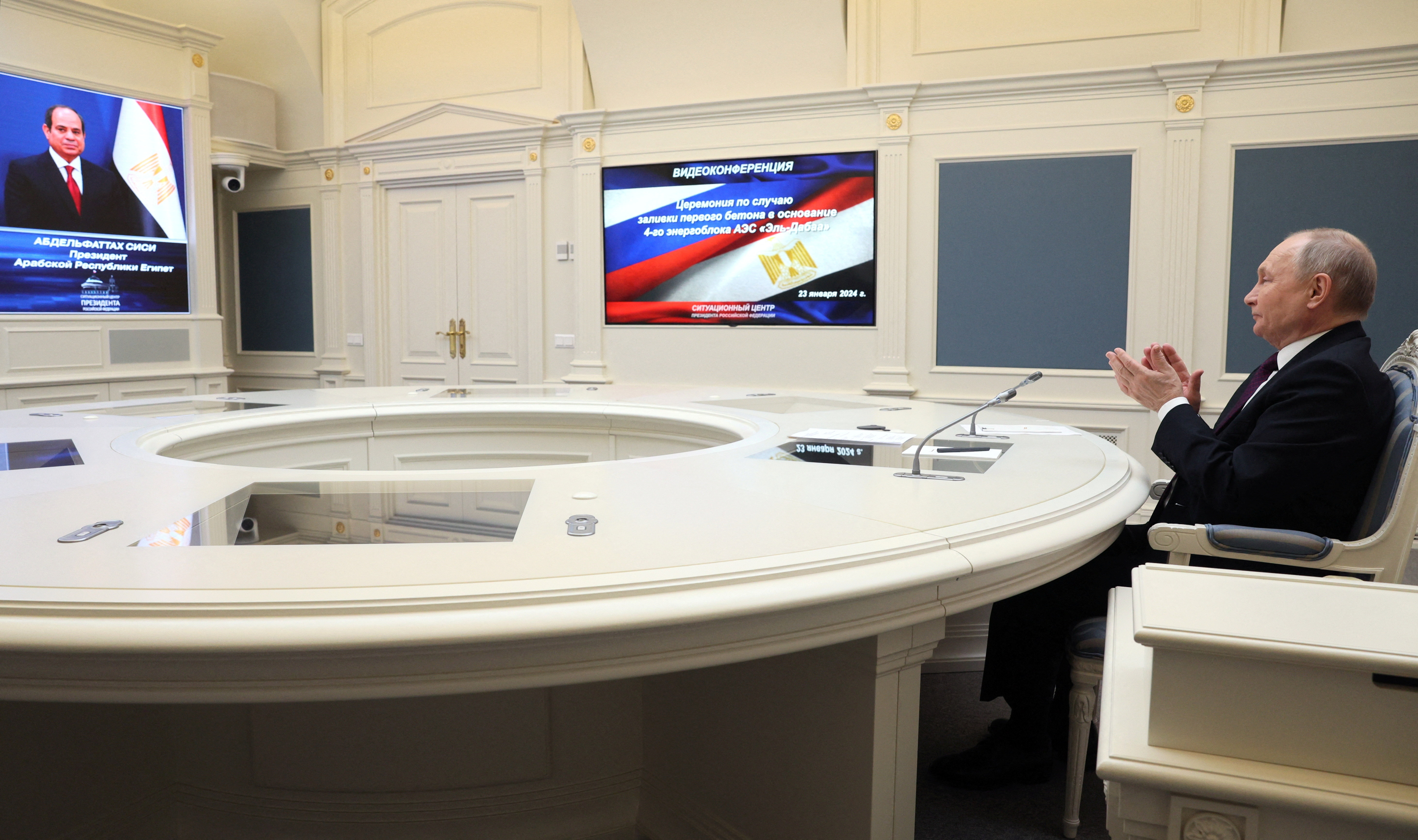 Ο Ρώσος πρόεδρος Βλαντίμιρ Πούτιν και ο Αιγύπτιος πρόεδρος Αμπνέλ Φατάχ αλ-Σίσι εγκαινίασαν σήμερα την κατασκευή μια νέας μονάδας του πυρηνικού σταθμού παραγωγής ηλεκτρικής ενέργειας στην Ντάμπαα της Αιγύπτου μέσω βιντεοσύνδεσης, καθώς η Μόσχα προωθεί τις πυρηνικές της φιλοδοξίες παγκοσμίως.