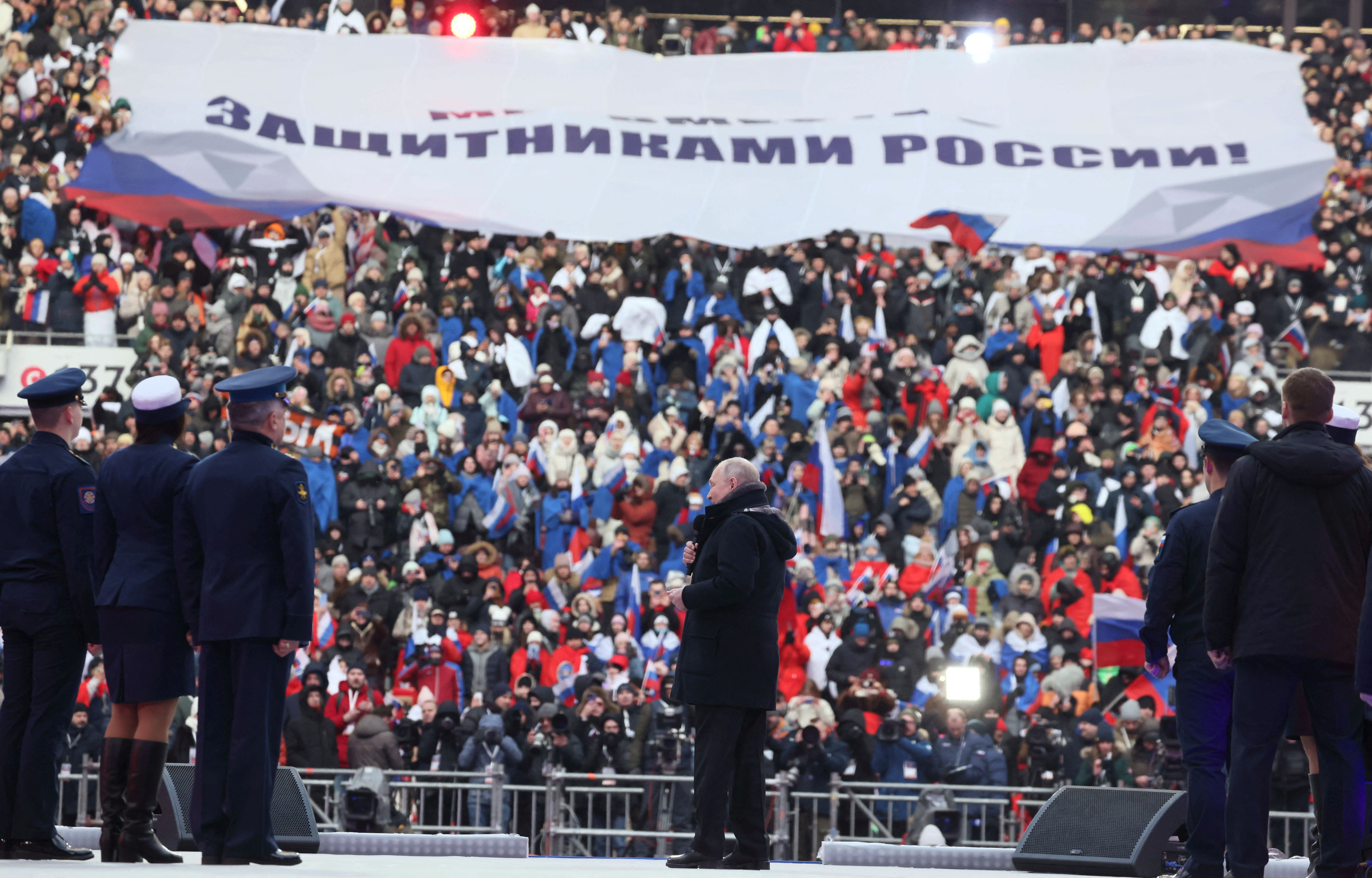 Ο Πρόεδρος Βλαντίμιρ Πούτιν χαιρέτησε τους Ρώσους στρατιώτες που πολεμούν στην Ουκρανία κατά την διάρκεια μιας συγκέντρωσης στην Μόσχα, καλώντας τα πλήθη να φωνάξουν «Ρωσία, Ρωσία» και να δείξουν την υποστήριξη τους σε εκείνους που όπως είπε υπερασπίζονται την πατρίδα.