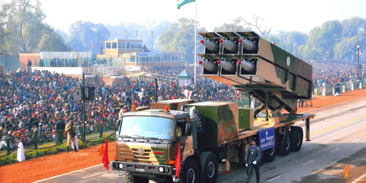 Ο πύραυλος Prahaar έχει βεληνεκές 150χλμ και τροφοδοτείται από στερεά καύσιμα.