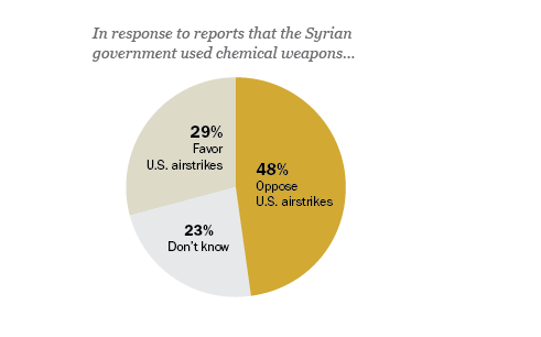 Το 74% πιστεύει ότι αεροπορικές επιθέσεις στη Συρία είναι πιθανό να δημιουργήσουν σπασμωδικές κινήσεις εναντίον των Ηνωμένων Πολιτειών και των συμμάχων τους στην περιοχή και το 61% πιστεύει ότι θα ήταν πιθανό να οδηγήσει σε μια μακρόχρονη στρατιωτική δέσμευση εκεί. Εν τω μεταξύ, μόλις το 33% πιστεύει ότι οι αεροπορικές επιθέσεις είναι πιθανό να είναι αποτελεσματικές στην αποθάρρυνση της χρήσης των χημικών όπλων. Το 51% πιστεύουν ότι δεν είναι πιθανό να επιτευχθεί αυτός ο στόχος.