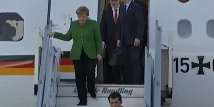 Προσγειώθηκε στο Ελευθέριος Βενιζέλος η Καγκελάριος της Γερμανίας Άνγκελα Μέρκελ, με το κέντρο της Αθήνας να «κλείνει» τόσο από τα δρακόντεια μέτρα των αστυνομικών δυνάμεων, όσο και από τις τροποποιήσεις των δρομολογίων των Μέσων Μαζικής Μεταφοράς.
