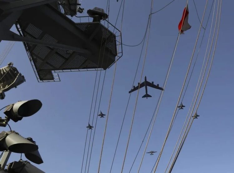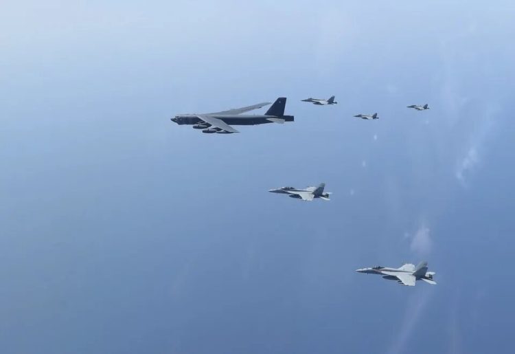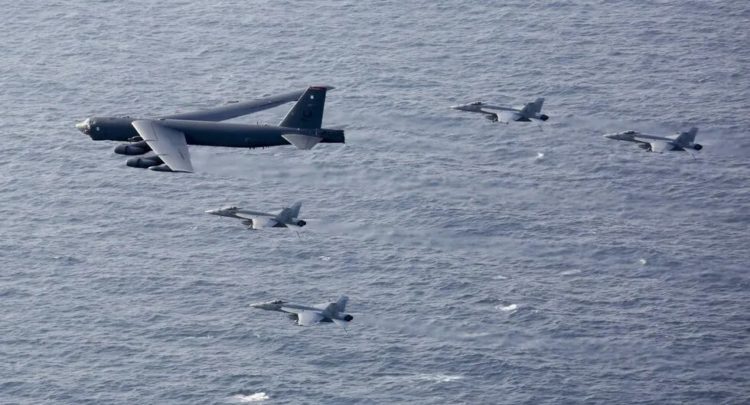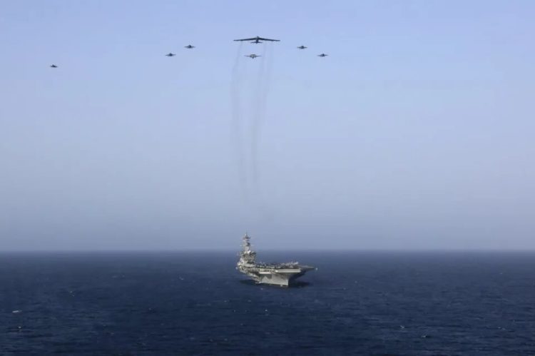 Στη συγκεκριμένη προσομοίωση το αεροπλανοφόρο USS Abraham Lincoln συνεργάστηκε με τα βομβαρδιστικά αεροπλάνα B-52, τη δύναμη δηλαδή που μετέφερε εσκεμμένα στην περιοχή ο Τραμπ.