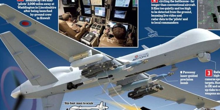 1. Το μη επανδρωμένο αεροσκάφος το χειρίζονται πιλότοι της Βρετανικής Βασιλικής Αεροπορίας 3,000 μίλια μακρία απο τη Συρία, στο Λινκολνσάιρ