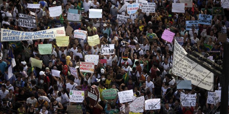 Τη Δευτέρα, στο πρώτο κύμα μαζικών διαδηλώσεων, των μεγαλύτερων των τελευταίων 21 ετών, 250.000 άτομα πραγματοποίησαν πορείες σε πολλές μεγάλες πόλεις, δηλαδή το ένα τέταρτο της λαοθάλασσας που κατέκλυσε χθες τους δρόμους της μεγάλης χώρας της Λατινικής Αμερικής με την αναδυομένη οικονομία.