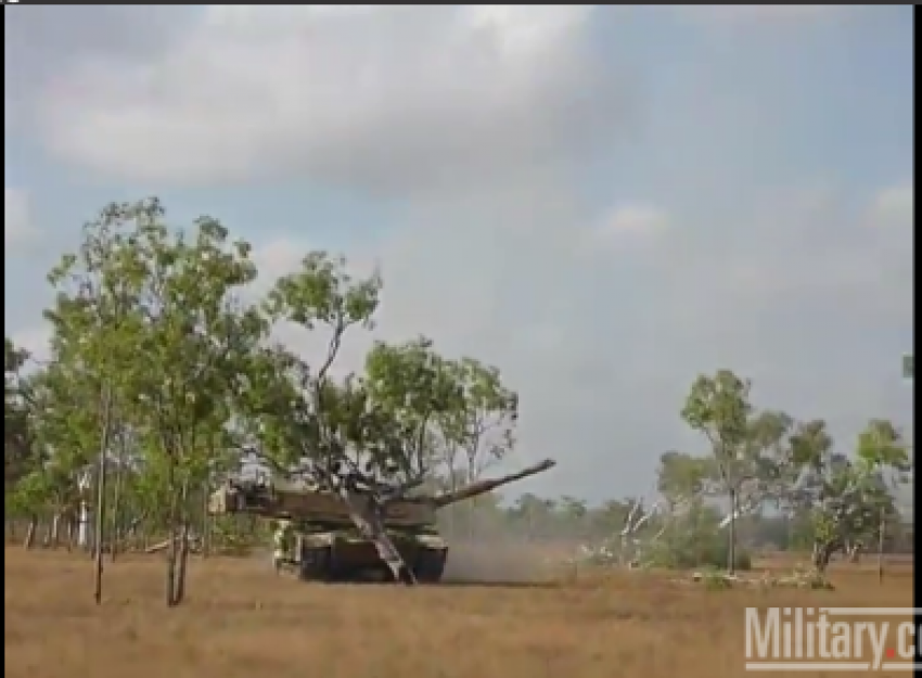Το πλήρωμα του άρματος μάχης Abrams στην Αυστραλία,δεν έχει οικολογικές ανησυχίες. Στο πέρασμά του ξεριζώνει με χαρακτηριστική ευκολία ότι δέντρο βρεθεί μπροστά του.Ένα απ΄ αυτά το «πλακώνει» αλλά,τίποτα δεν σταματά το Abrams. Εκτός ίσως από τους οικολόγους!