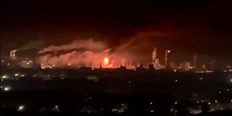 A massive drone strike is hitting an oil refinery right now in Ufa, Russia. A huge fire is raging at the site. Russian air defense has failed. Again.