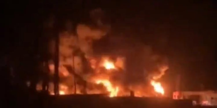 This is the second attack on the facility this year. A fire is raging near the switchgear and boiler equipment storage. Oil… pic.twitter.com/Cy9dKb2vtK