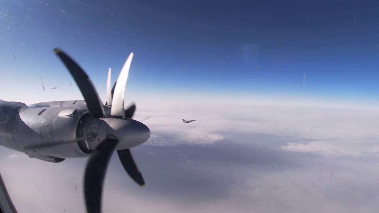 Δείτε στο βίντεο που έδωσε στην δημοσιότητα το ρωσικό υπουργείο Άμυνας νορβηγικά F-16AM από το Bodø, F-35 A από την βάση Ørland και βρετανικά Typhoon να παρακολουθούν τις «Αρκούδες» πάνω από δύο ωκεανούς.