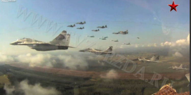 Περισσότερα από 20 μαχητικά της ρωσικής Πολεμικής Αεροπορίας πετούν σε διάφορους σχηματισμούς. Τα πλάνα είναι τραβηγμένα από κάμερες τοποθετημένες μέσα σε κόκπιτ κάποιων αεροσκαφών που συμμετείχαν στις πτήσεις.