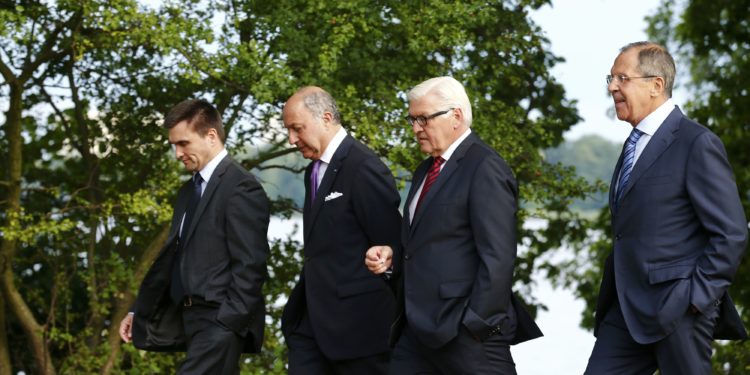 Ο γερμανός υπουργός Εξωτερικών Φρανκ-Βάλτερ Σταϊνμάγερ δήλωσε χθες, Κυριακή, μετά το πέρας της συνάντησης με τους ομολόγους του από την Ουκρανία, τη Ρωσία και τη Γαλλία ότι οι υπουργοί Εξωτερικών θα ενημερώσουν τους ηγέτες των κρατών τους και ενδεχομένως, να συμφωνήσουν τη Δευτέρα ή την Τρίτη το πώς θα συνεχιστούν οι συνομιλίες.