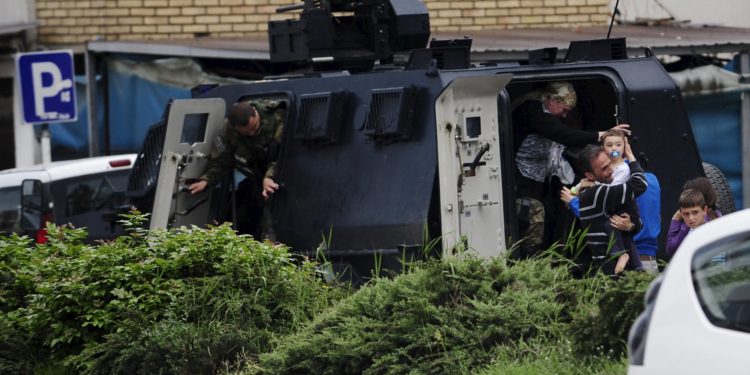 Ο πρόεδρος της ΠΓΔΜ Γκιόργκι Ιβάνοφ διέκοψε την επίσκεψη εργασίας που πραγματοποιεί στη Ρωσία και επιστρέφει εσπευσμένα στα Σκόπια, όπου θα καλέσει το συμβούλιο ασφαλείας της ΠΓΔΜ,μετά τις ένοπλες συρράξεις που διεξάγονται από το πρωϊ στην πόλη Κουμάνοβο μεταξύ ισχυρών αστυνομικών δυνάμεων και μεγάλης ομάδας ενόπλων Αλβανών, μετέδωσε ο ανταποκριτής του ΑΠΕ, Ν. Φραγκόπουλος.