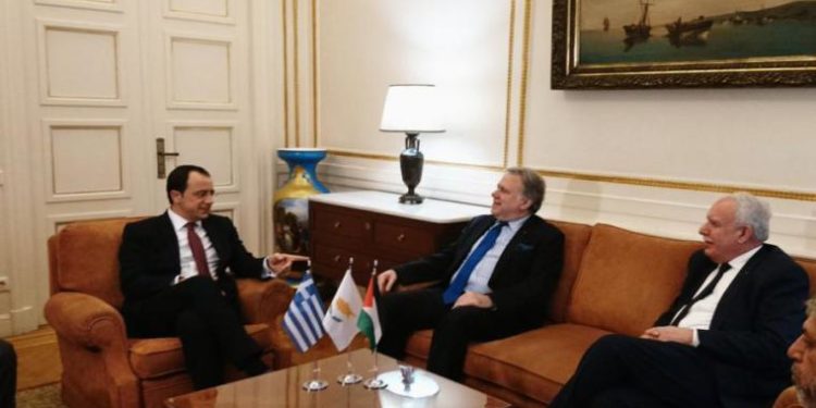 Σε πολύ καλό κλίμα η συνάντηση ΥΠΕΞ Ελλάδας Κύπρου και Παλαιστίνης
