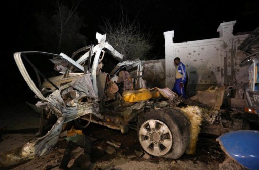 Έκρηξη παγιδευμένου με εκρηκτικά αυτοκινήτου, την ευθύνη για την οποία ανέλαβαν οι ισλαμιστές αντάρτες αλ-Σεμπάμπ, είχε αποτέλεσμα να σκοτωθούν πέντε στρατιώτες έξω από το προεδρικό μέγαρο στην πρωτεύουσα της Σομαλίας Μογκαντίσου και να υποστούν σοβαρές ζημιές δύο ξενοδοχεία που βρίσκονταν εκεί κοντά, ανακοίνωσε η αστυνομία.