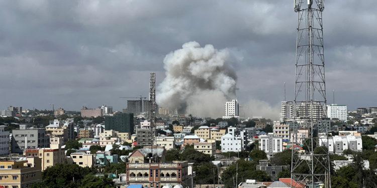 Οι δύο εκρήξεις σημειώθηκαν σχεδόν ταυτόχρονα στον πολυσύχναστο δρόμο Κ5, είπε ο Σαντίκ Ντουντίς, εκπρόσωπος της σομαλικής αστυνομίας.