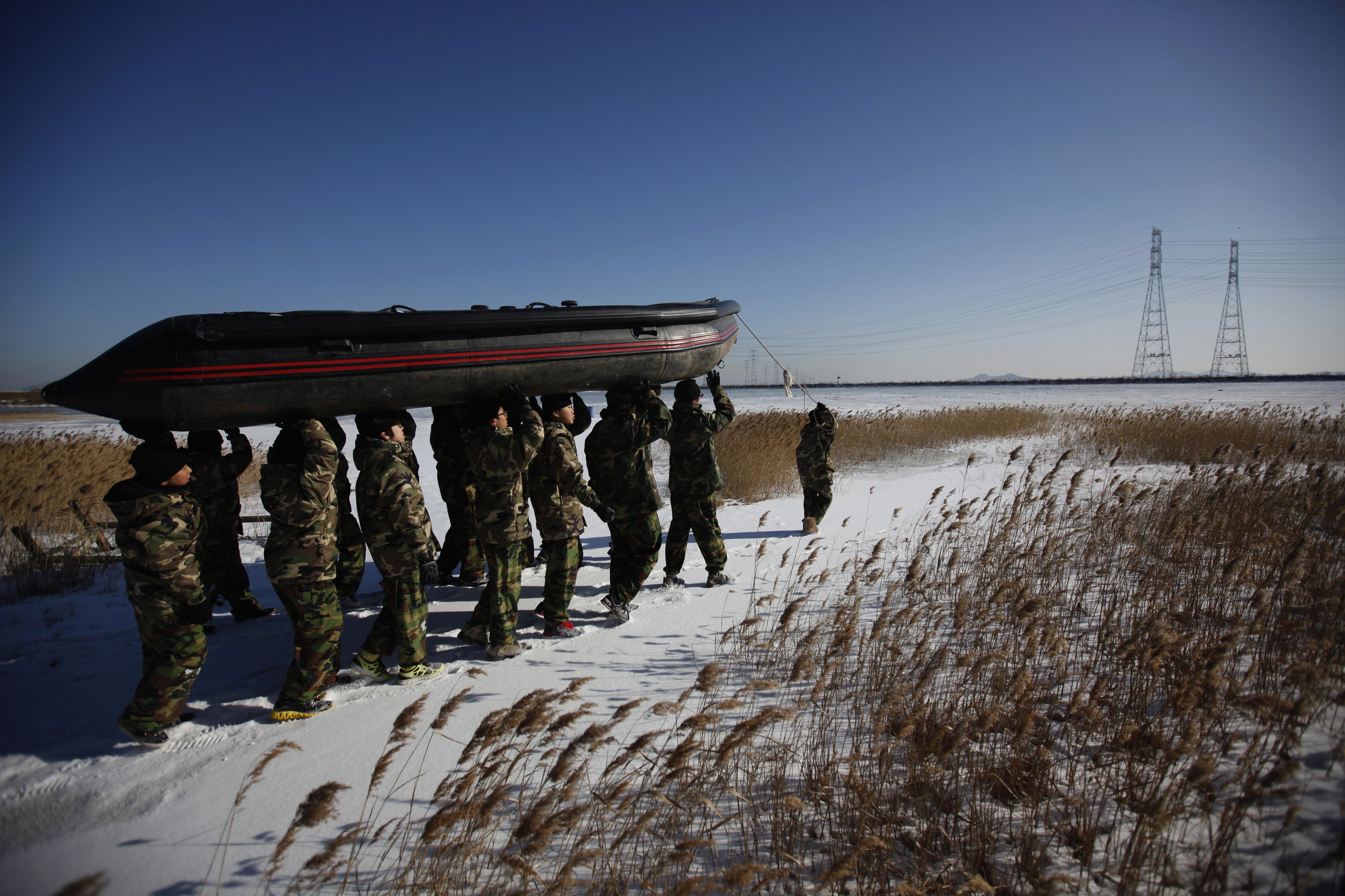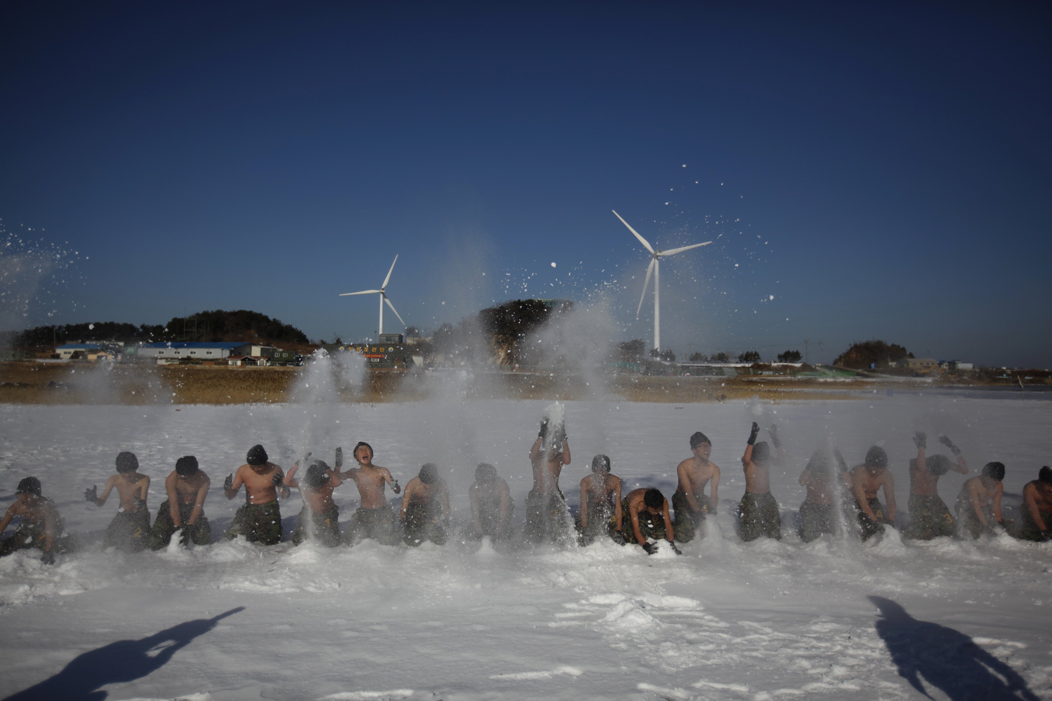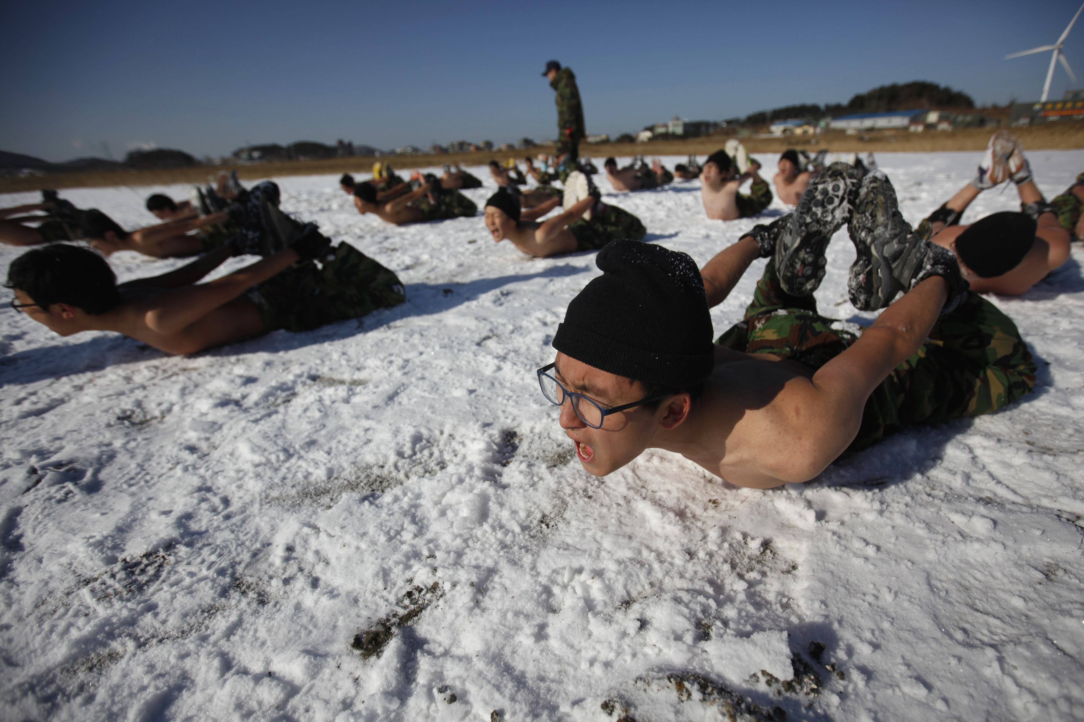 Οι φωτογραφίες από το Reuters είναι τραβηγμένες στο στρατόπεδο Ansan, νότια της Σεούλ όπου εκατοντάδες μαθητές μεταξύ 11 και 17 ετών παρακολουθούν μαθήματα χειμερινής διαβίωσης από 4 έως 14 .Το στρατόπεδο διοικείται από απόστρατους πεζοναύτες.