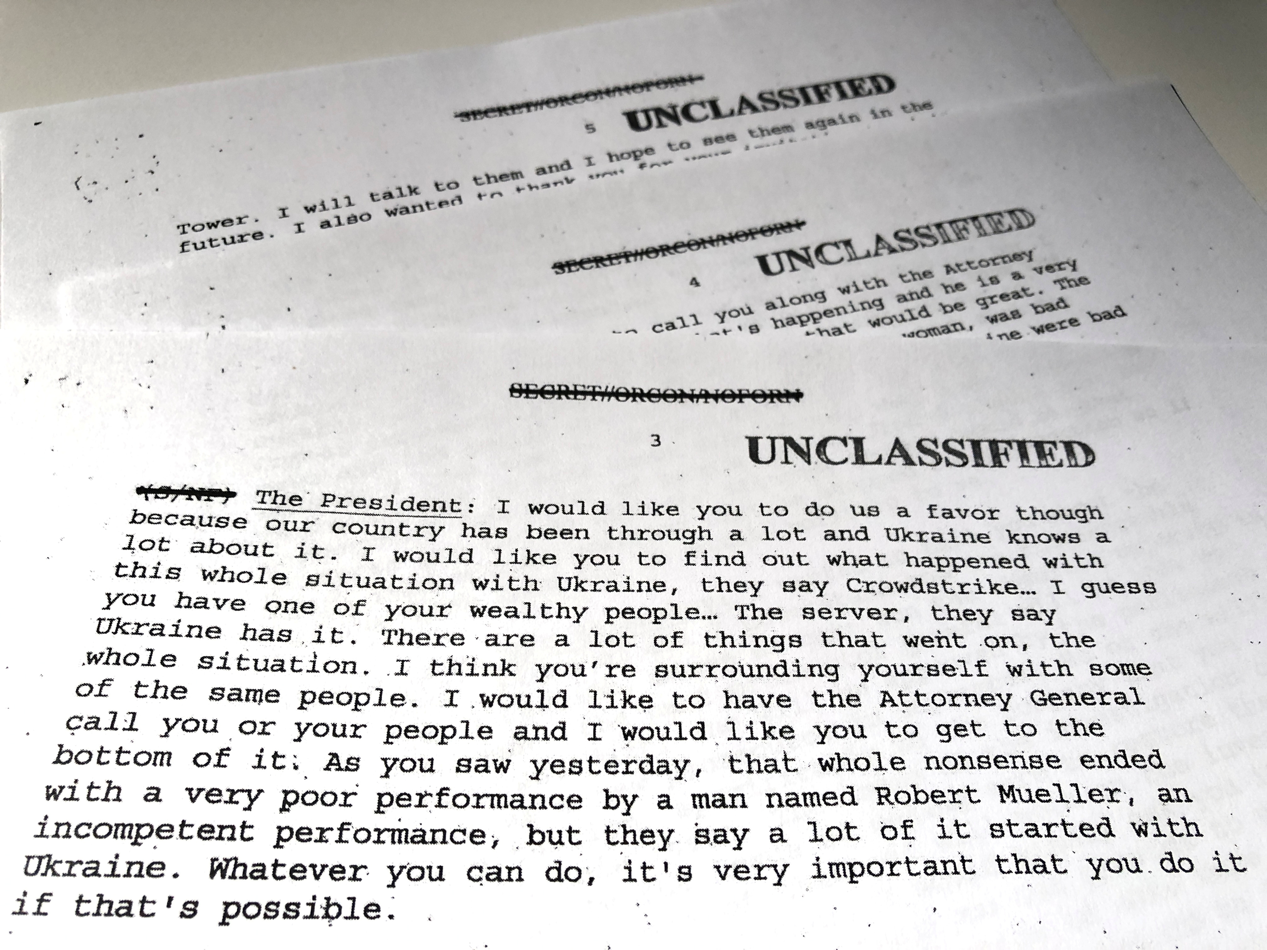 Σε τηλεφώνημα που έγινε τον περασμένο Ιούλιο, ο Πρόεδρος των ΗΠΑ, Ντόναλντ Τραμπ, ζήτησε από τον Πρόεδρο της Ουκρανίας Βόλντιμιρ Ζελένσκι να διερευνήσει εάν ο πρώην Αντιπρόεδρος Τζο Μπάιντεν έκλεισε μία «έρευνα» που διεξάγονταν για εταιρεία που απασχολούσε τον γιο του, σύμφωνα με μία περίληψη του τηλεφωνήματος που δημοσίευσε σήμερα ο Λευκός Οίκος, ενώ η Δημοκρατική πρόεδρος της Βουλής των Αντιπροσώπων Νάνσι Πελόζι ανακοίνωσε την ενεργοποίηση της διαδικασίας για την παραπομπή του προέδρου Τραμπ, με πρώτο στάδιο, την επισημοποίηση της έρευνας που διεξάγεται σε πολλά επίπεδα από τους Δημοκρατικούς της Βουλής των Αντιπροσώπων.