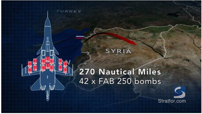 To Stratfor σε ανάλυσή του σ΄ ένα ενδιαφέρον βίντεο εξηγεί πιο είναι το κλειδί της ρωσικής εμπλοκής όχι μόνο στη Συρία ,αλλά και στο Ιράκ. Το Stratfor δίνει μεγάλη σημασία στις δυνατότητες του αεροσκάφους Su-34 των Ρώσων ,λόγω των μεγάλων αποστάσεων που μπορεί να καλύπτει φορτωμένο με όπλα .