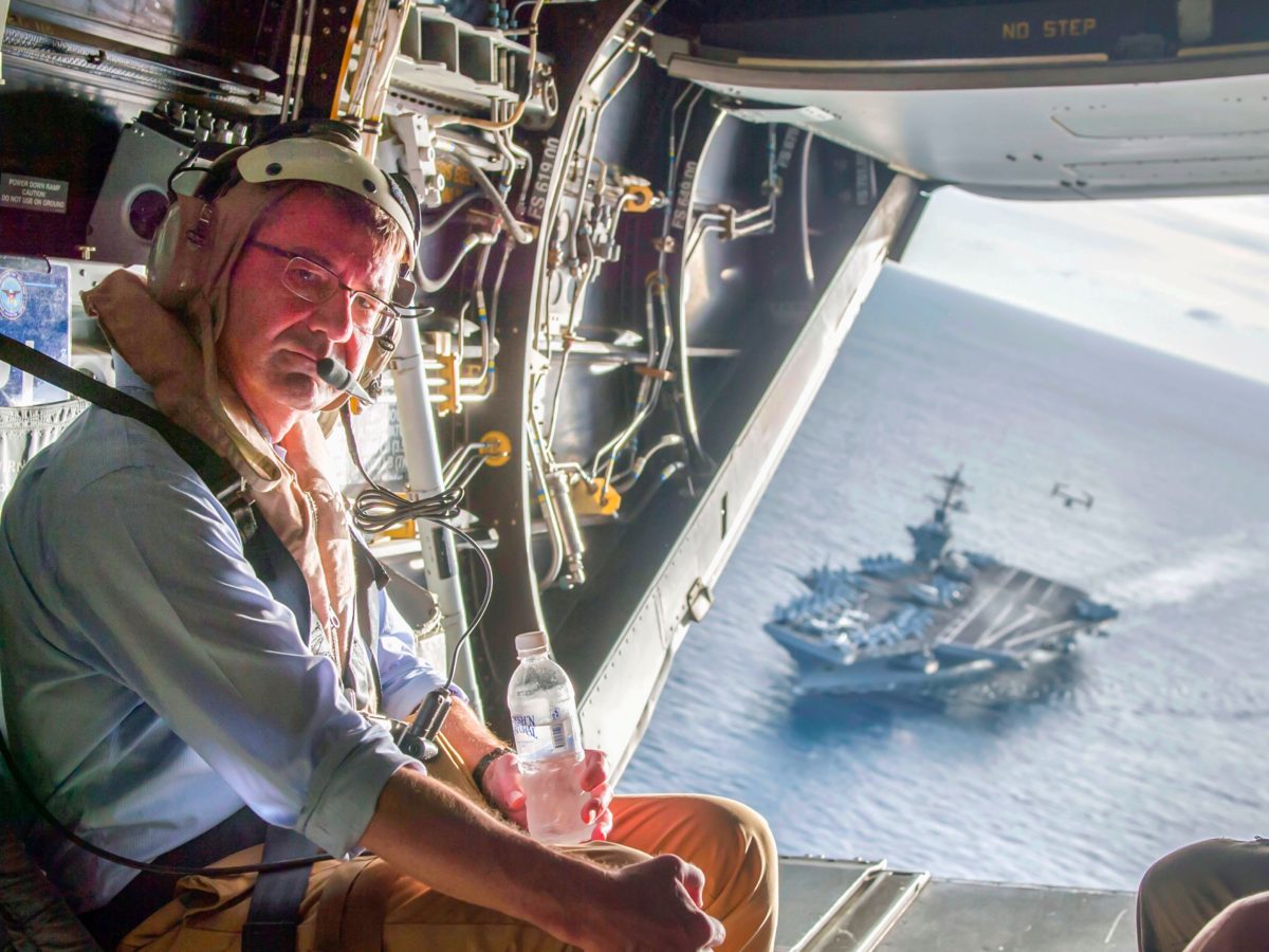 Ο Κάρτερ είχε επισκεφτεί το αεροπλανόφορο USS Theodore Roosevelt που διέσχιζε τη Νότια Σινική Θάλασσα, το Νοέμβριο. Στην παραπάνω φωτογραφία ο Κάρτερ σε V22-Osprey μετα την επίσκεψη στις 5 Νοεμβρίου 2015.