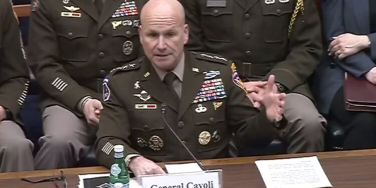 Ο στρατηγός Κρίστοφερ Καβόλι, επικεφαλής των αμερικανικών δυνάμεων στην Ευρώπη, δήλωσε σήμερα, Τρίτη 8 Απριλίου 2025, ότι οι ΗΠΑ πρέπει να διατηρήσουν την τρέχουσα στρατιωτική τους παρουσία στην Ευρώπη.