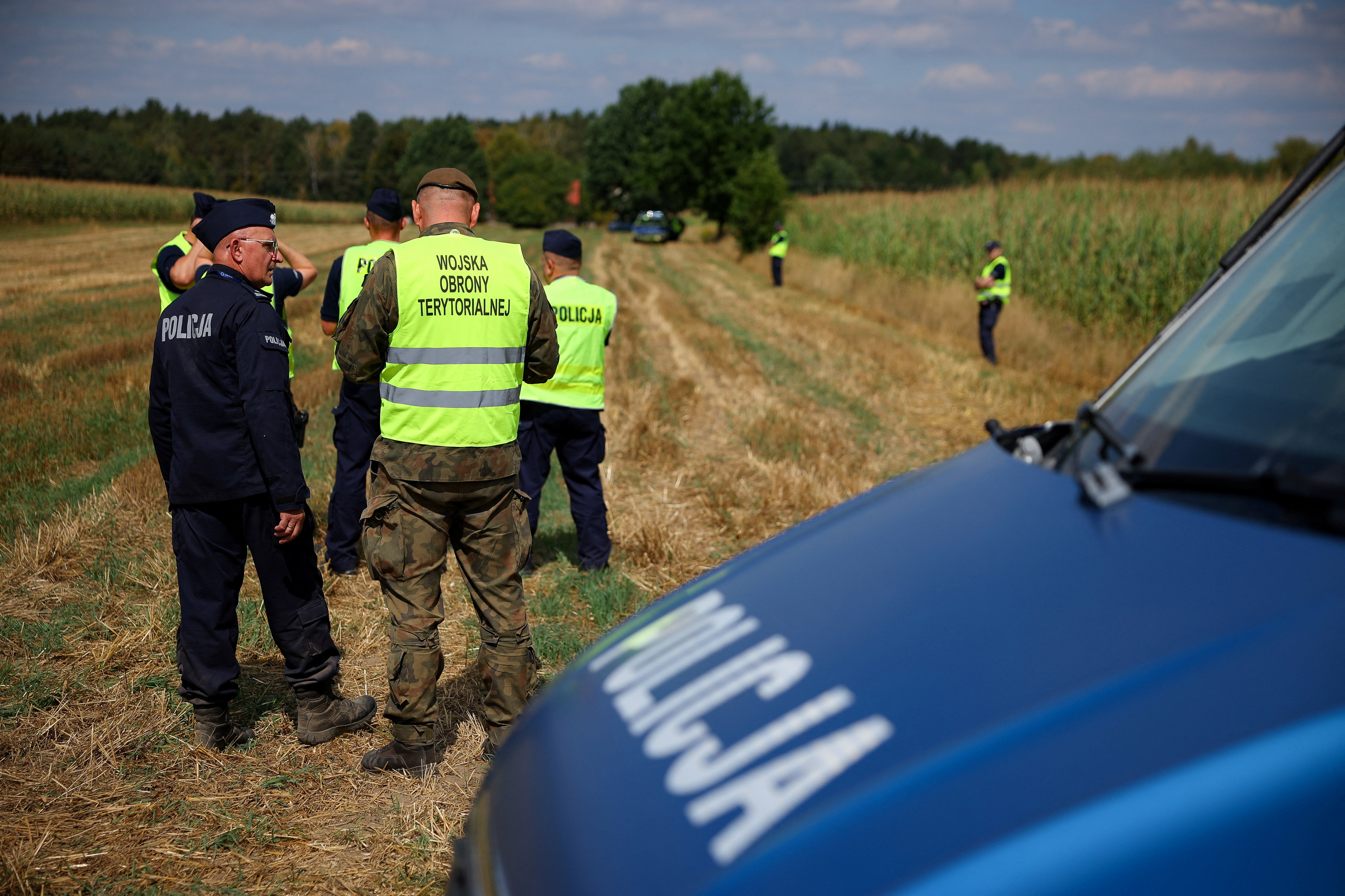 Δυνάμεις ασφαλείας στο σημείο που έπεσε το στρατιωτικό drone στην Πολωνία