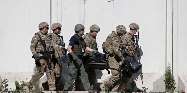 Βομβιστική επίθεση που σημειώθηκε κοντά στην αμερικανική πρεσβεία στην Καμπούλ στοίχισε σήμερα τη ζωή σε τέσσερις στρατιώτες της υπό το ΝΑΤΟ διεθνούς στρατιωτικής δύναμης, αναφέρει σε δήλωσή του ο συνασπισμός.