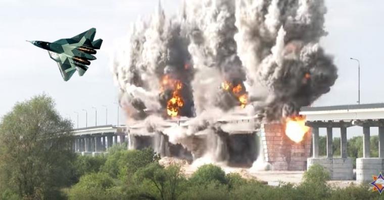 Πρόκειται για ένα ενσωματωμένο βίντεο σε άρθρο της lenta.ru (ανήκει στον στενό συνεργάτη του Vladimir Putin, Vladimir Potanin), που απεικονίζει την κατεδάφιση μιας γέφυρας στην Λευκορωσία, μέσω βομβαρδισμού ακριβείας από Su-57. Πρέπει να επισημάνουμε σε αυτό το σημείο ότι το βίντεο δεν παρουσιάστηκε μέσω επίσημων ρωσικών καναλιών (Υπ. Άμυνας κτλ).
