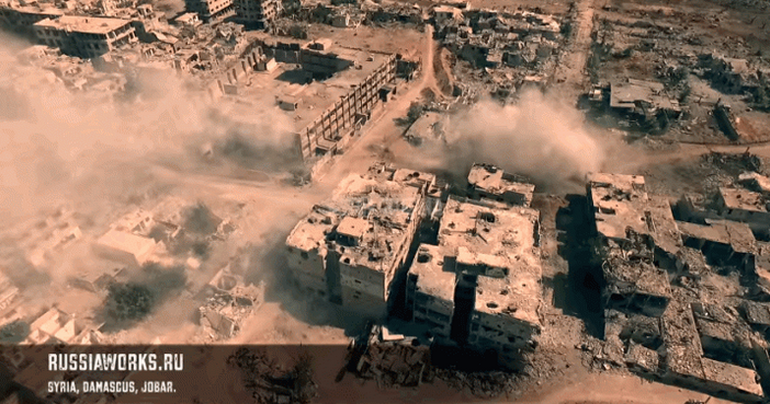 Πλάνα απο drone δείχνουν επίθεση του στρατού της Συρίας εναντίον προπύργιο των ανταρτών στη Δαμασκό. Τα πλάνα ειναι πραγματικά απίθανα, αν και εμφανώς επεξεργασμένα.