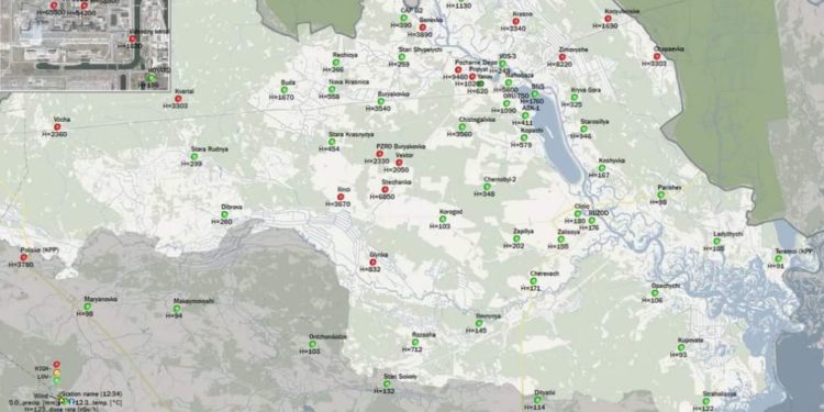 Data from the automated radiation monitoring system of the exclusion zone, which is available online, indicate that the control levels of gamma radiation dose rate (red dots) have been exceeded at a significant number of observation points. pic.twitter.com/G4WEGgkMcT