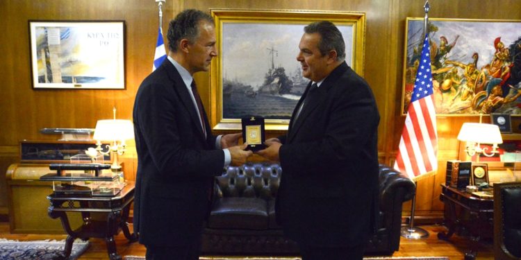 Ο Υπουργός Εθνικής Άμυνας Πάνος Καμμένος συναντήθηκε με τον Βοηθό Υπουργό Εξωτερικών των ΗΠΑ Jonathan Cohen, με τον οποίο συζήτησαν θέματα διμερούς συνεργασίας στους τομείς άμυνας και ασφάλειας, ενώ αντάλλαξαν απόψεις και για θέματα της ευρύτερης περιοχής μας.
