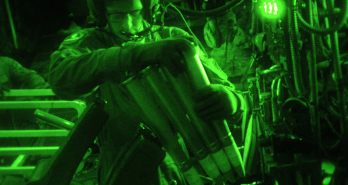 Υπό την κάλυψη του σκότους, ένα AC-130U εξαπολύει την τρομερή δύναμη πυρός του κατά θέσεων τζιχαντιστών.