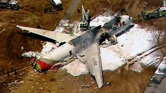 Ένα αεροσκάφος Boeing 777 της κορεατικής αεροπορικής εταιρίας Asiana Airlines συνετρίβη κι έπιασε φωτιά στο διεθνές αεροδρόμιο του Σαν Φρανσίσκο των ΗΠΑ, όπου αποπειράθηκε να πραγματοποιήσει κατεπείγουσα προσγείωση στις 11.20 π.μ. (τοπική ώρα), όπως ανακοίνωσε η αμερικανική ομοσπονδιακή υπηρεσία πολιτικής αεροπορίας (FAA). Σύμφωνα με τις πρώτες πληροφορίες- έγινε ένα λάθος στην προσγείωση, με αποτέλεσμα να κοπεί η ουρά του αεροπλάνου, στη συνέχεια να γυρίσει ανάποδα και να τυλιχτεί στις φλόγες. Οι αρχές δεν έχουν κάνει ακόμη λόγο επίσημα για θύματα, ενώ εικόνες που μετέδωσαν αμερικανικά τηλεοπτικά δίκτυα εικονίζουν ένα αεροσκάφος από το οποίο υψώνεται πυκνός καπνός σε έναν από τους διαδρόμους προσγείωσης. Σύμφωνα με το τηλεοπτικό δίκτυο CNN είναι ασαφές αν και πόσα θύματα υπάρχουν, ενώ η FAA ανέφερε πως δεν γνωρίζει πόσοι άνθρωποι επέβαιναν στο 777.