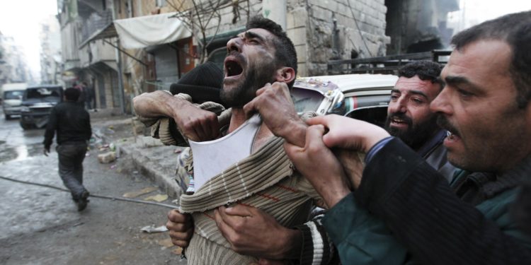 Το κέντρο Τύπου του Χαλεπιού (αντιπολίτευση) κατήγγειλε «μια σφαγή» στην συνοικία Χανάνο, σημειώνοντας ότι «τα νοσοκομεία έχουν γεμίσει με τραυματίες».