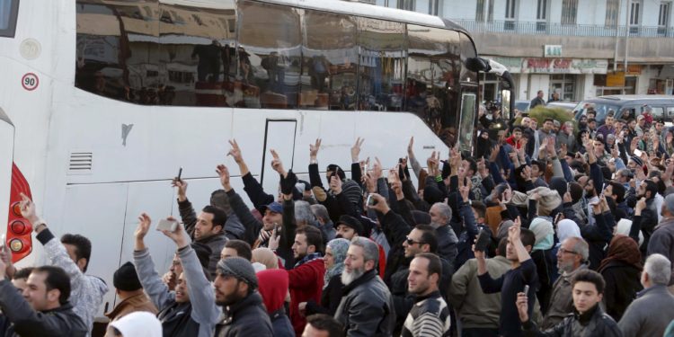 Εκατοντάδες Σύροι που εγκατέλειψαν τις εστίες τους σε δύο πολιορκούμενες από τους αντάρτες περιοχές έφθασαν σήμερα κοντά στη Δαμασκό, ταξιδεύοντας μέσω Τουρκίας και Λιβάνου, στο πλαίσιο συμφωνίας ανταλλαγής μεταξύ της συριακής κυβέρνησης και των ανταρτών την οποία εποπτεύει ο ΟΗΕ.
